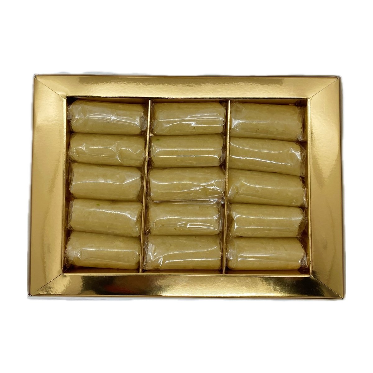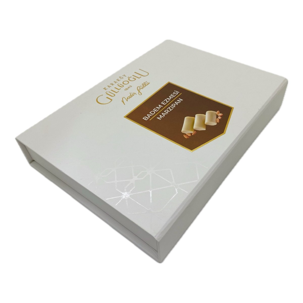 Karakoy Gulluoglu presents their delicious rendition of marzipan. It's hand made using finely ground almonds, sugar, and water, and then blended to create the perfect texture before being cooked. Marzipan is often enjoyed with cake, confectionaries, or even by itself with a cup of coffee or tea. Whichever your preference is, get ready for your taste buds to enter a blissful awakening with this sweet, nutty dessert.