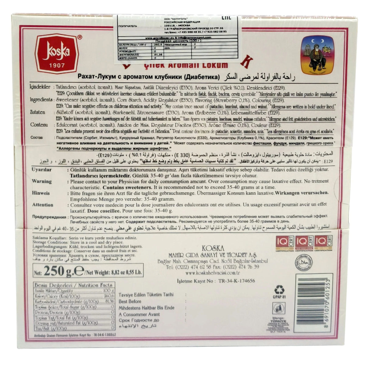 Koska’s sugar-free Turkish delight is crafted with health-conscious individuals in mind, using sweeteners like isomalt and sorbitol that provide sweetness without the harmful effects of sugar. This strawberry-flavored treat delivers the classic taste and texture of traditional Turkish delight, ensuring that you can enjoy a delicious dessert without compromising your dietary needs.