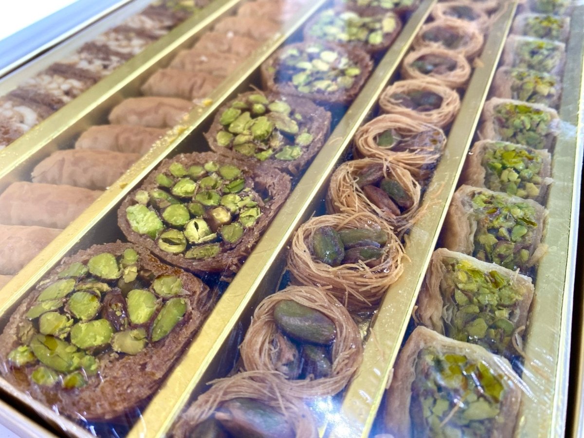 Mix baklava van Zaitoune Sweets is gevuld met Turkse desserts, bestaande uit gezoete gebakjes gemaakt van dunne lagen deeg, gevuld met noten zoals walnoten en pistachenoten, en gezoet met siroop. Verpakt met een hoes van versterkt karton ondersteund door een nylon hoes, om de bescherming van het product tegen externe factoren zoals vocht te waarborgen en de kwaliteit en smaak te behouden.