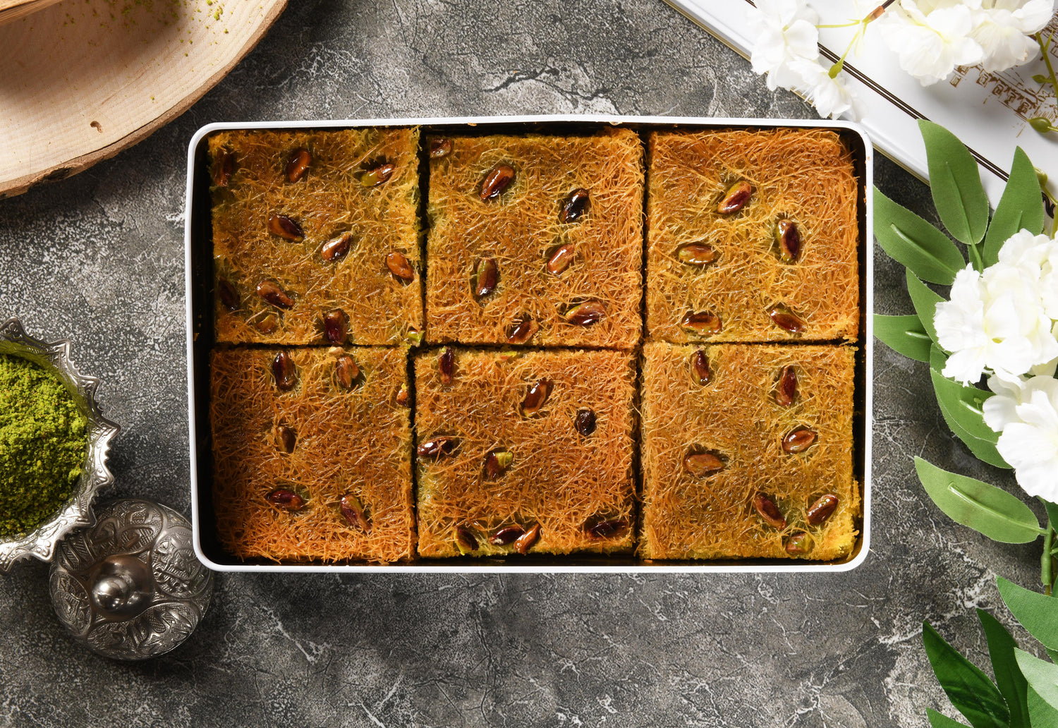 Pistache Kadayif is een heerlijk Turks dessert gemaakt door pistachenoten in lagen van dunne draadkadayif te wikkelen. Met zorg en precisie gemaakt, belooft dit dessert je smaakpapillen te prikkelen met zijn rijke smaak en onweerstaanbare textuur.
