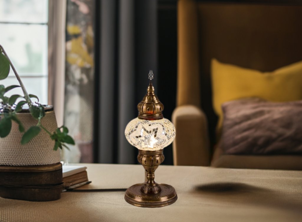 Ontwaak je innerlijke dromer met de Handmade Glass Mosaic Desk Lamp, White Star.
