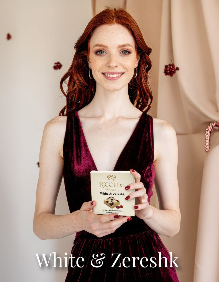 Ricolle Witte Chocolade met Zereshk Druif – 100g zoetheid, pit & welzijn