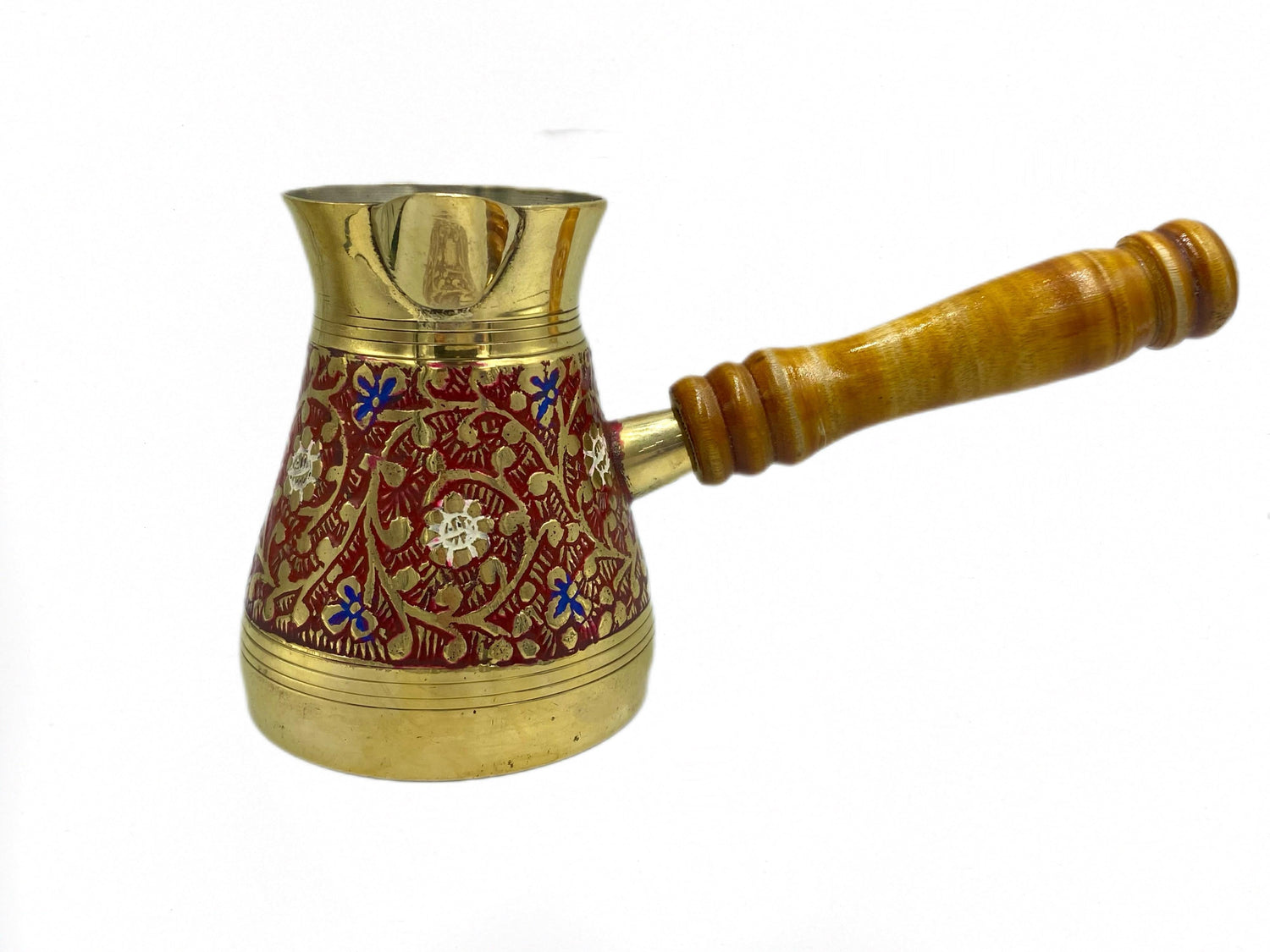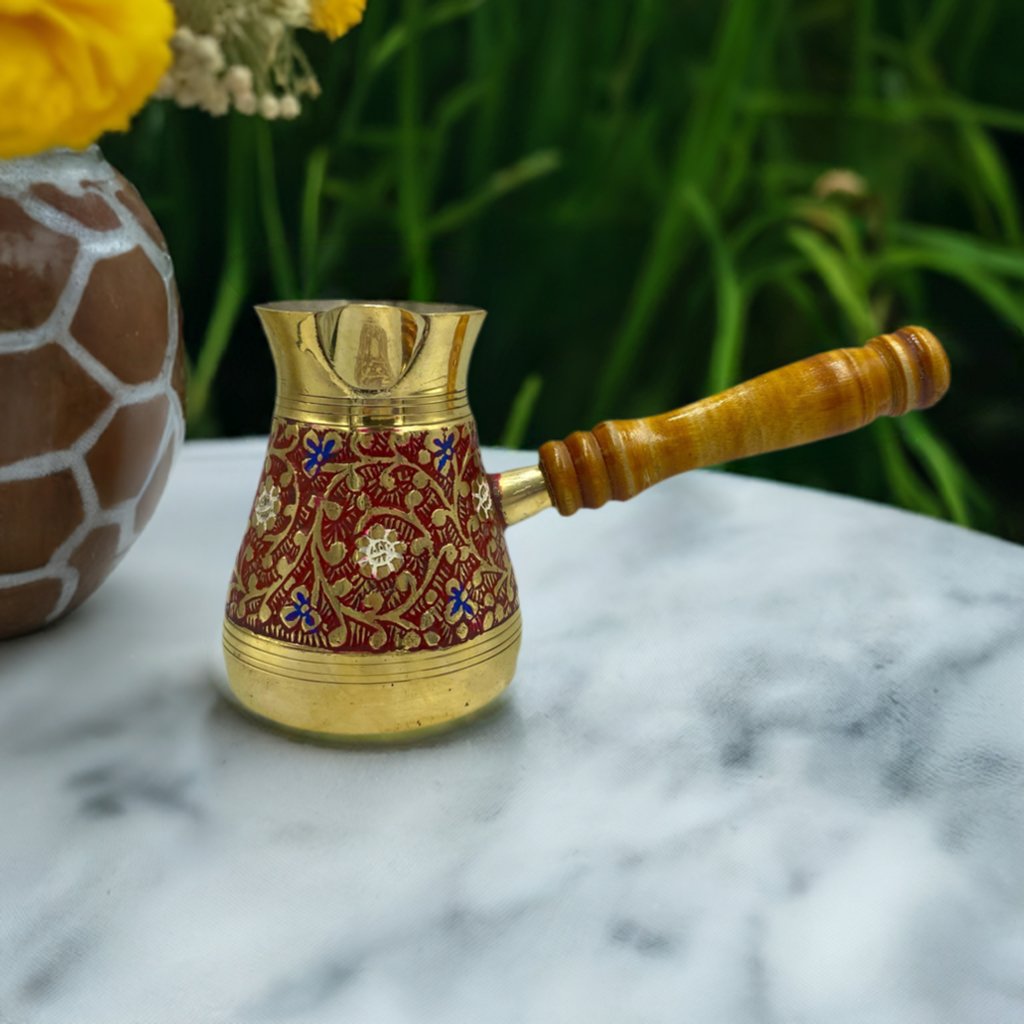 Lavina | Red Bronze Turkish Coffee Pot with Wooden Handle Indian Design (11 cm) - TryAladdin